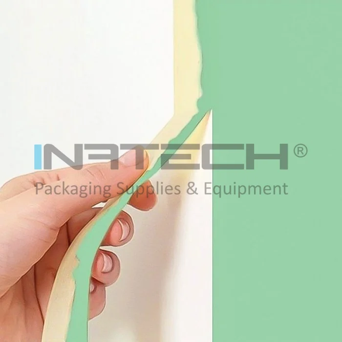 Banda de mascare este realizata pe suport din hartie usor creponata cu un adeziv din cauciuc natural (Hot Melt).