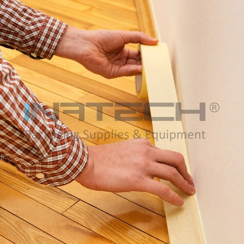 Banda de mascare este realizata pe suport din hartie usor creponata cu un adeziv din cauciuc natural (Hot Melt).
