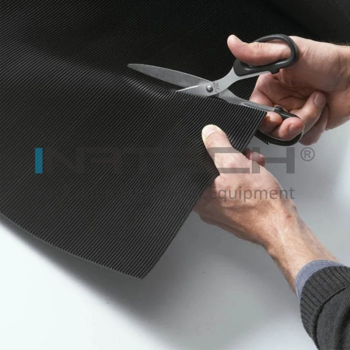 Banda Antiderapanta Ridata este fabricata dintr-un material plastic, dar este aproape imposibil de distins fata de un material din cauciuc, aspectul ei apropiindu-se de cel al unui produs din cauciuc cu nervuri, dar cu avantajele unui compozit din plastic.