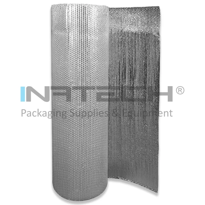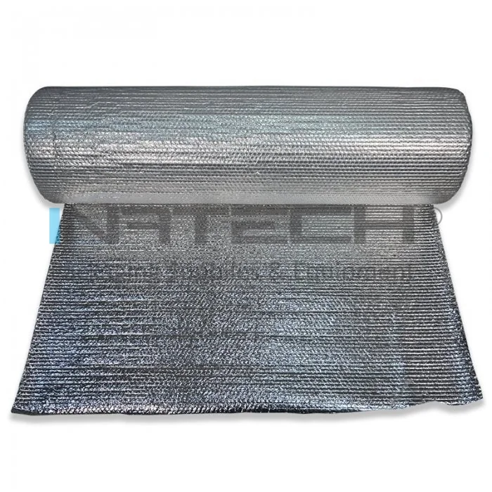 Folie Bule Mici Aluminizata este o bariera de vapori reflectorizanta compusa din folie cu bule de aer in doua straturi, laminata cu BOPP aluminizat pe o singura parte.