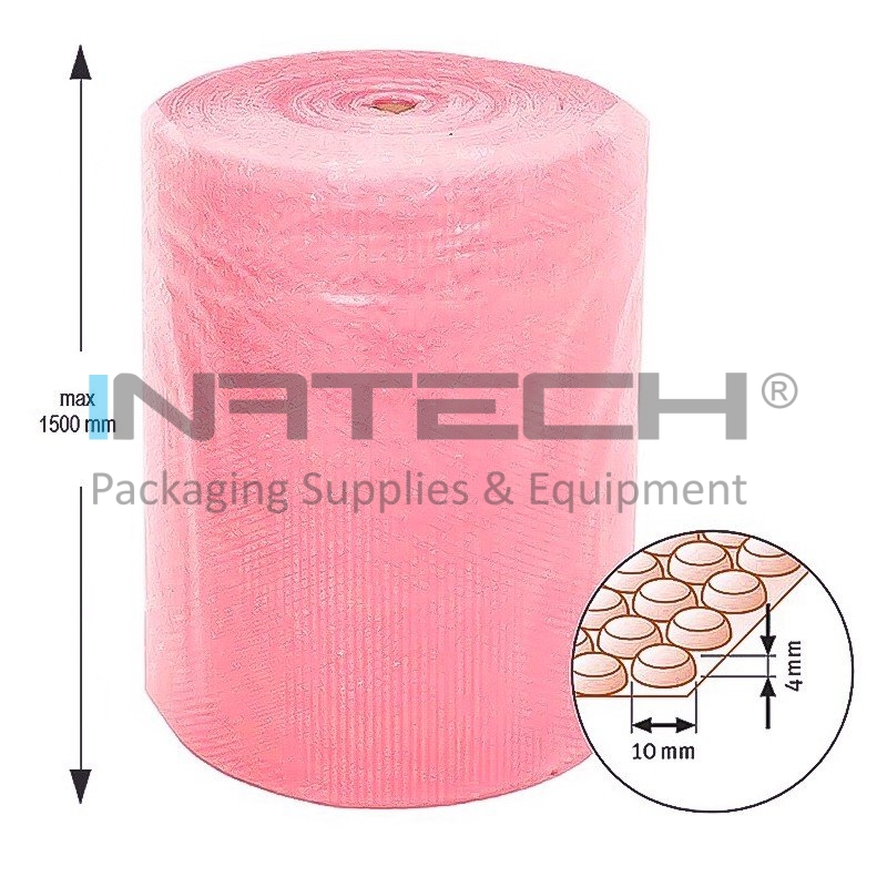 Folia cu bule de aer cu tratament antistatic ESD este recomandata pentru ambalarea obiectelor electronice, aparaturii de birotica. Folia cu bule de aer apara produsele de socuri si lovituri, asigura bariera impotriva umiditatii, prezinta proprietati termoizolante.