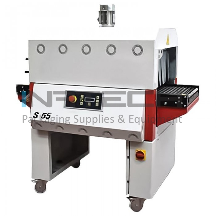 Tunelul de Ambalat S55 este un tunel retractabil cu o singura camera, cu o inaltime maxima a produsului de 230 mm. Are o viteza maxima a benzii transportoare de 18,8 metri / min. Tunelul de ambalat este flexibil si eficient nevoilor multiple de ambalare si poate functiona cu cele mai variate tipuri de folie termocontractabila.