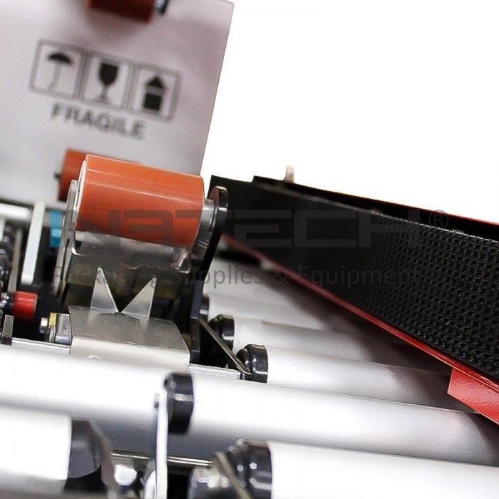 Mașina de sigilat cutii Easy tape 50 SB sigileaza partea inferioara si superioara a cutiei cu banda autoadeziva. Este echipat cu un sistem de inchidere cu 3 clape pentru a facilita operatia de inchidere. Masina poate fi utilizata de operatori nespecializati, deoarece necesita operatii de reglare foarte simple. Sigilarea cutiei are loc prin intermediul a doua curele laterale de actionare (actionate de doua motoare), asigurand o uniformitate maxima. Rezultatul este o aliniere perfecta a clapelor si, prin urmare, o etansare optima, care este realizata de capetele de lipire performante.
