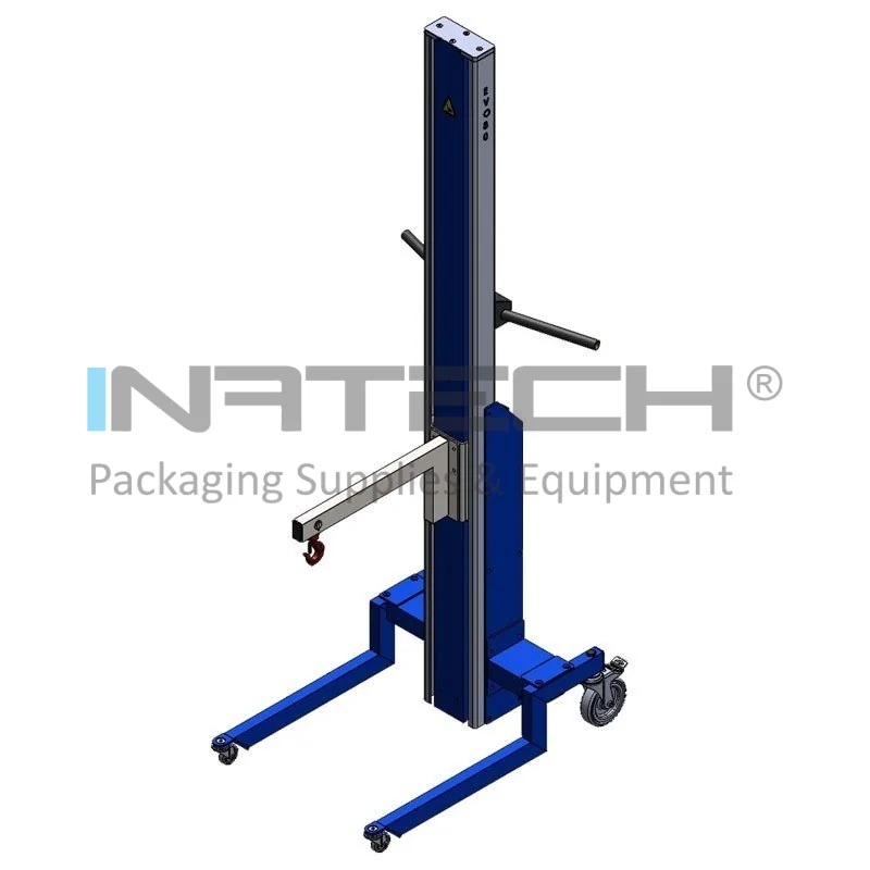 Elevator mobil cu suport ce functioneaza ca o macara cu carlig ideala pentru manipularea produselor in spatii inchise si inguste, unde nu se poate instala o macara clasica. Sistemul este echipat cu un motor, iar un afisaj LCD furnizeaza informatii detaliate despre starea bateriei si tensiune. Autonomia este optima, asigurand cel putin 100 de cicluri de ridicare/coborare cu o singura incarcare la capacitatea maxima. Timpul de incarcare este de aproximativ 6 ore. De asemenea, se remarca un sistem inovator de incarcare a bateriei in timpul procesului de coborare.