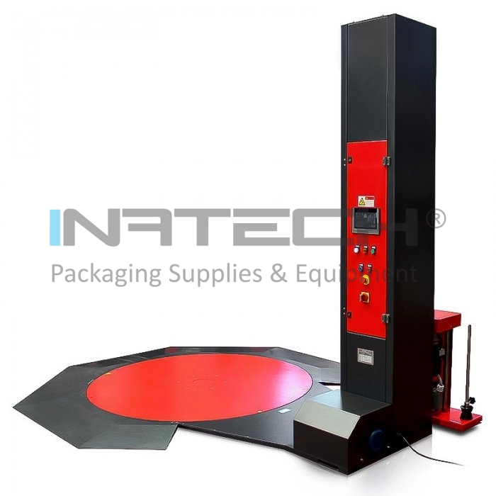 Paletizorul semiautomat este utilizat pentru infolierea incarcaturilor paletizate cu folie stretch. Masina de paletizat are o masa rotativa de numai 26 mm inaltime, suportand o greutate maxima pe o placa de 1200 kg.
