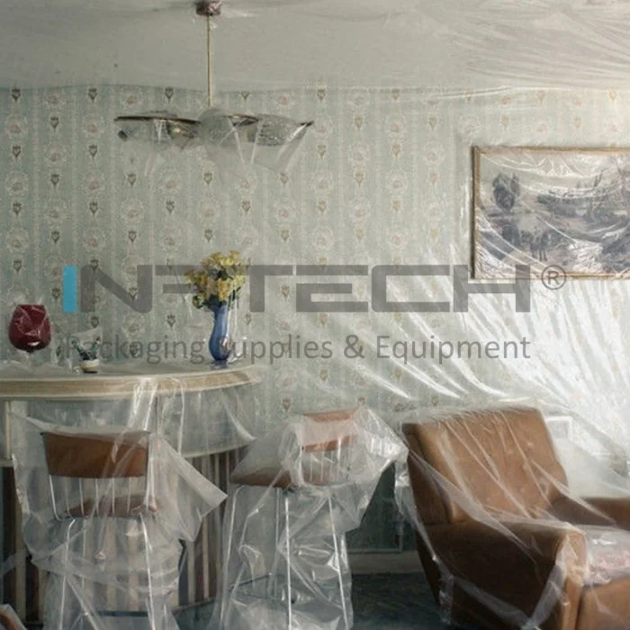 Se mai foloseste pentru protejarea suprafetelor si obiectelor de mobilier sau electrocasnicelor in timpul amenajarilor, renovarilor interioare sau exterioare, impotriva umezelii, a prafului sau a petelor de vopsea;