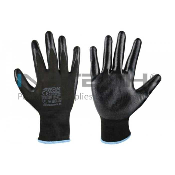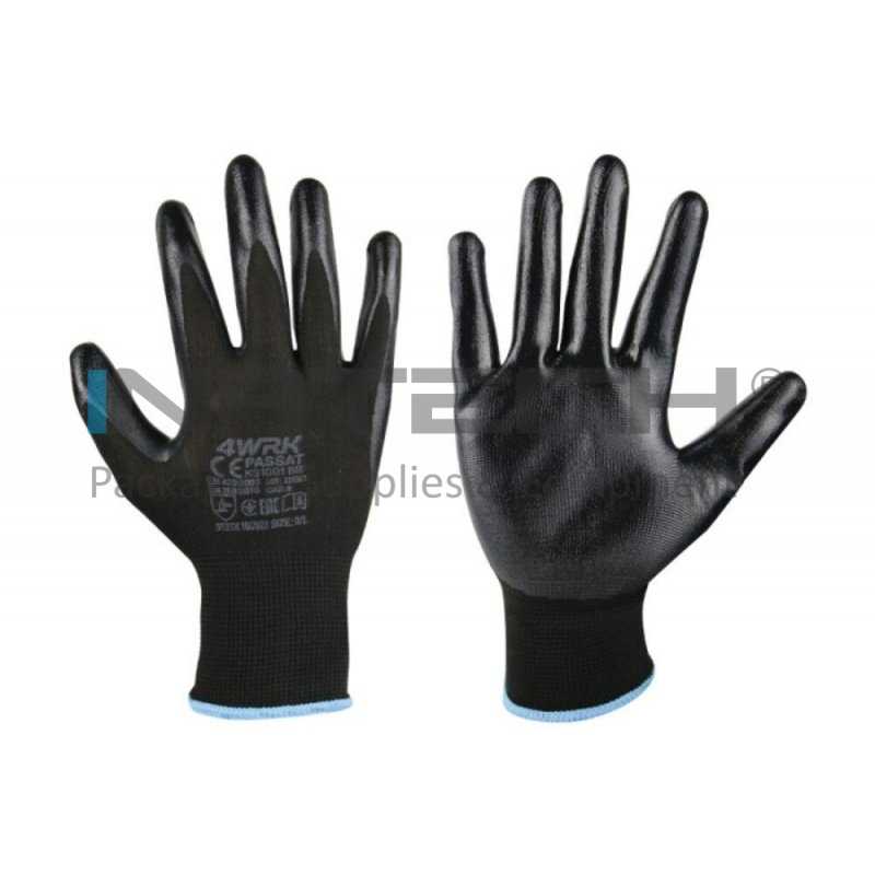 Manusi Lucru PASSAT Marime 10/XL, Композиции poliester-nitril, Greutate 21GR/Manusa gr, Цвят tesatura tricotata neagra-acoperire neagra