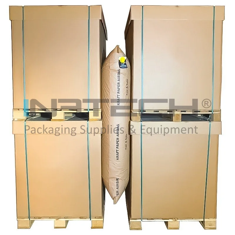 Saci Gonflabili Din Hartie Kraft sau Dunnage Bags ce au rolul de a securiza produsele pe toata durata transportului prin ocuparea spatiilor goale dintre paletii cu marfa. Sacii gonflabili kraft se plaseaza in spatiul ramas gol si se umfla pana in momentul in care marfa este fixata si nu mai exista niciun risc de a se deteriora.