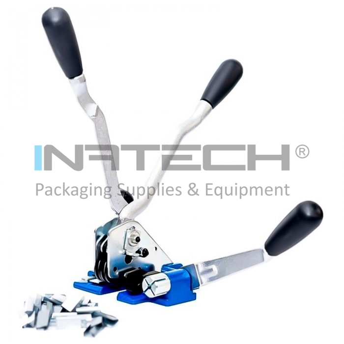 Aparat Legat Banda PP 12/16 mm, Manual ce permite legarea benzii de polipropilena cu ajutorul clemelor din metal si taierea benzii ramase in plus.
