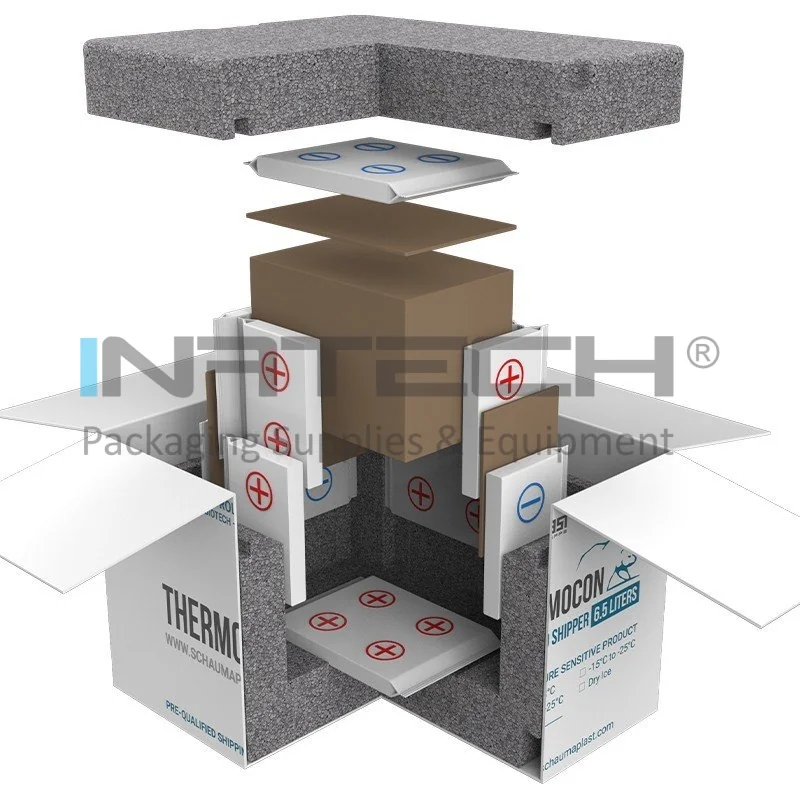 Cutiile termoizolante pentru transport sunt dedicate asigurarii protectiei pasive a produselor farmaceutice, biotehnologice si altor bunuri sensibile la temperatura. Ambalajele termo precalificate sunt concepute pentru a mentine temperatura constanta intre +2°C si +8°C, oferind astfel o solutie integrala pentru cerintele de transport in medii reci.