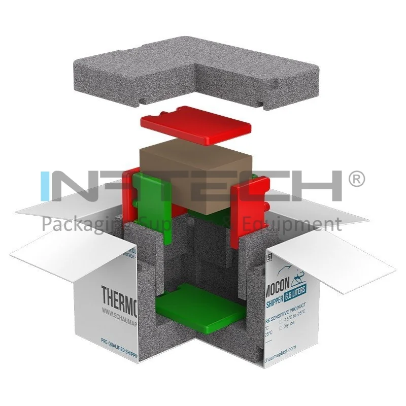 Sistemul complet include atat ambalaje termoizolante, cat si elementele de racire, gata de utilizare pentru expedierea produselor farmaceutice, biotehnologice si altor bunuri sensibile la temperatura. Testele riguroase efectuate in camere climatice au confirmat eficienta intregului termosistem in mentinerea conditiilor necesare pentru aceste produse.